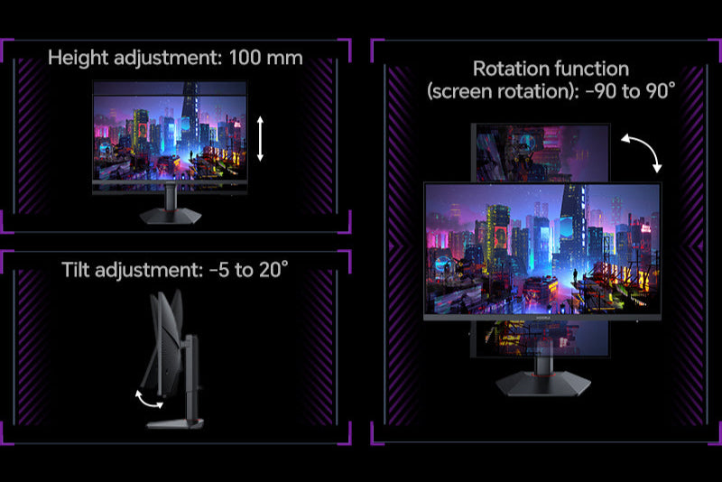 Height adjustable: lift stroke 100mm; Adjustable up and down: -5~20°; Rotatable: -90~90°